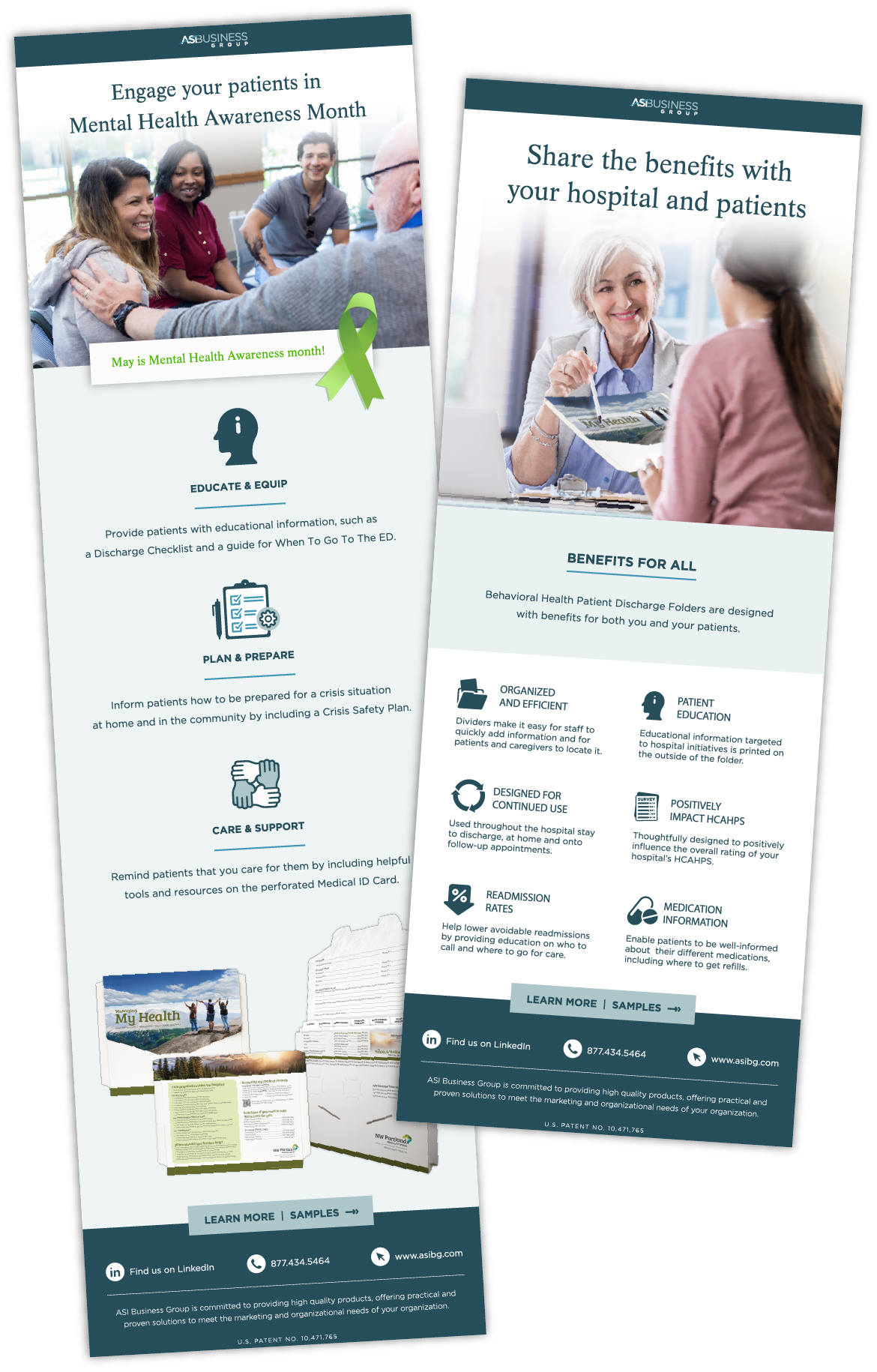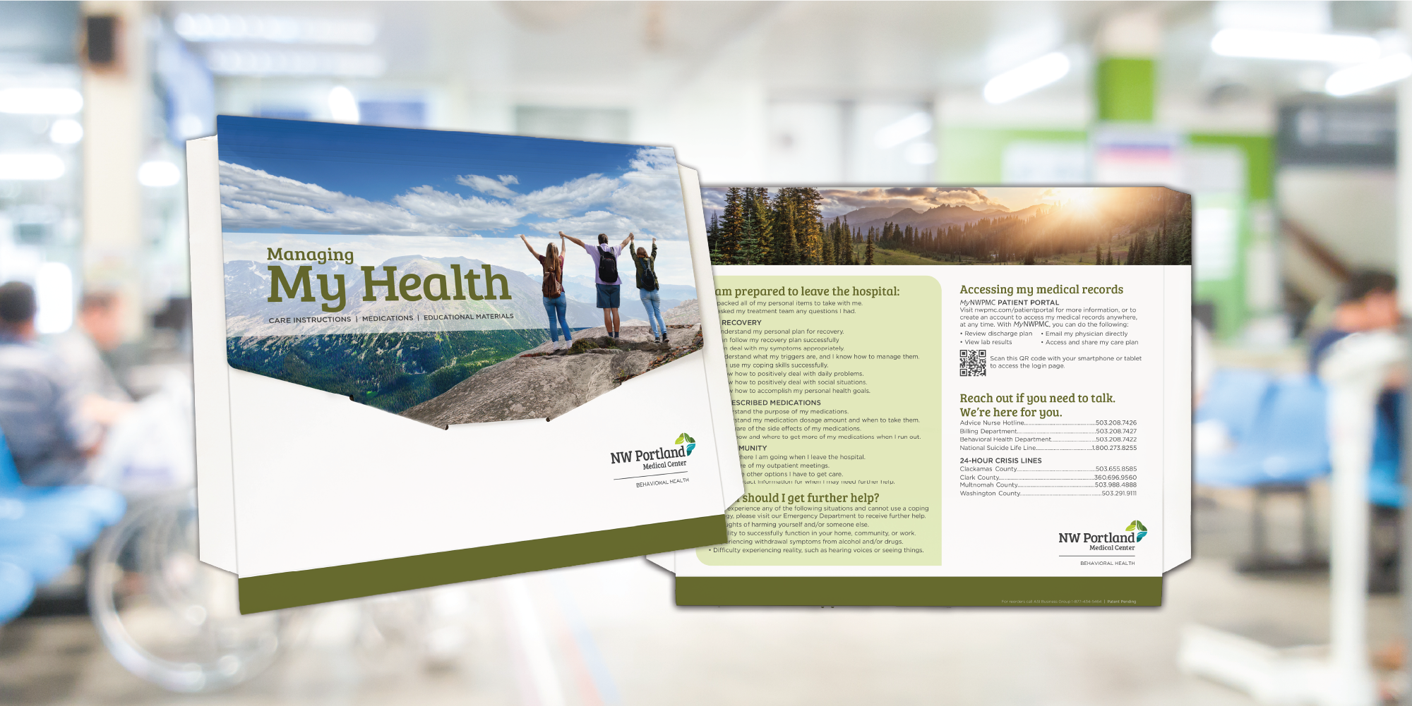 is a patient educational tool designed to help healthcare organizations who needed a better way to provide patients with clear, organized behavioral health resources during the discharge process. I designed a patient education folder that structured critical information into an easy-to-navigate format, combining content design, visual hierarchy, and print production. The folder was later white-labeled for multiple healthcare organizations, allowing providers to deliver consistent, branded educational materials that support patient understanding and follow-up care.